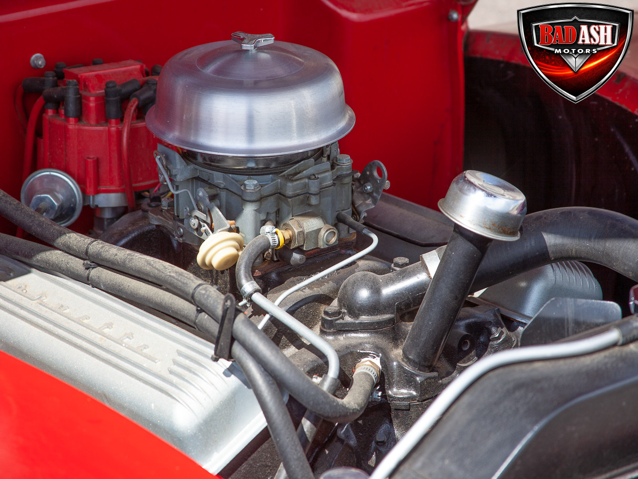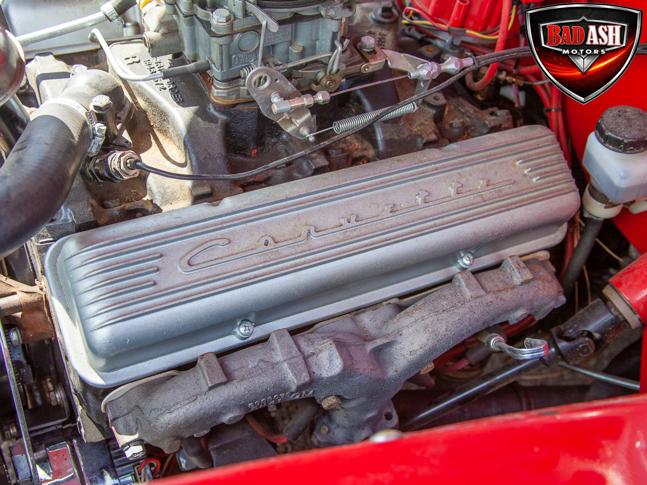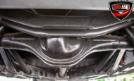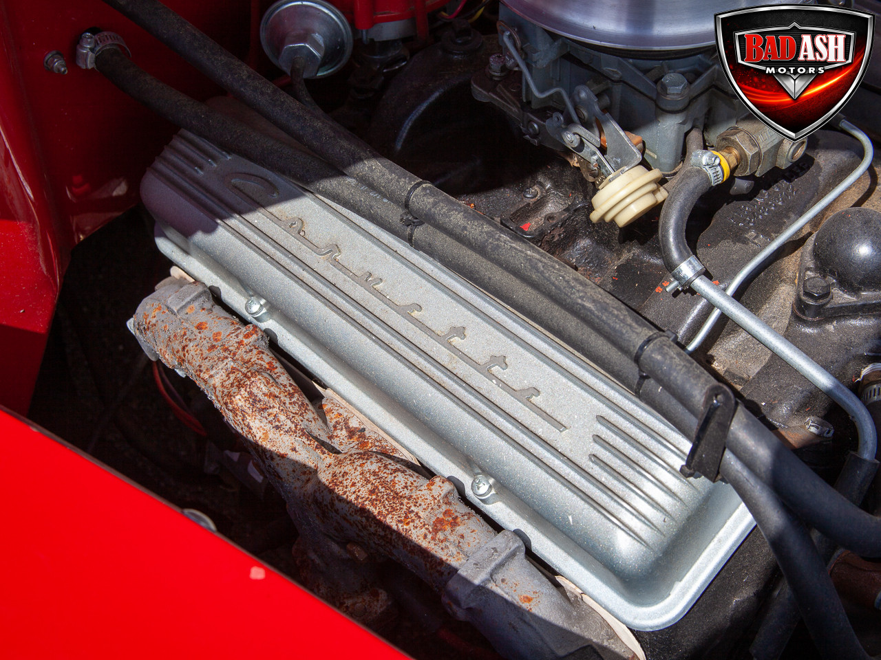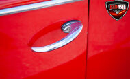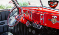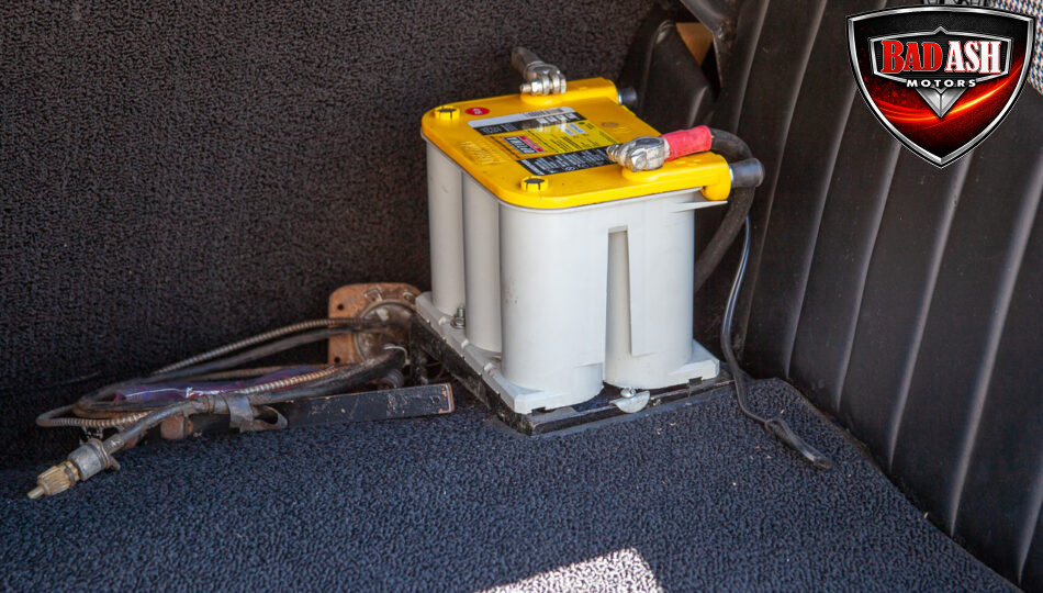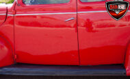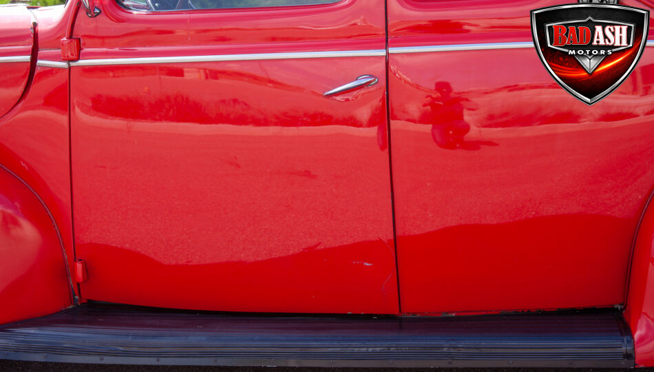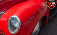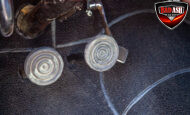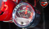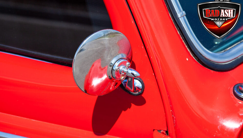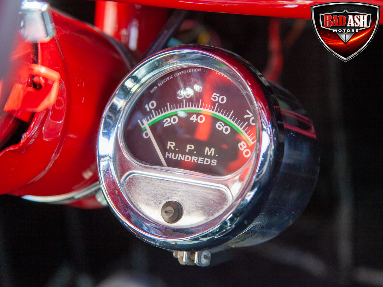 This red coupe is well equipped with a power driver’s seat and tilt steering wheel, while the custom interior features black cloth and leather seats with a houndstooth stripe for a classic performance look. Up front, it benefits from a Weed Eater crossmember, tubular A-arms, and Mustang II–style disc brakes.
