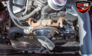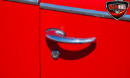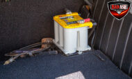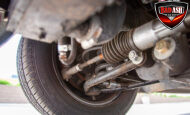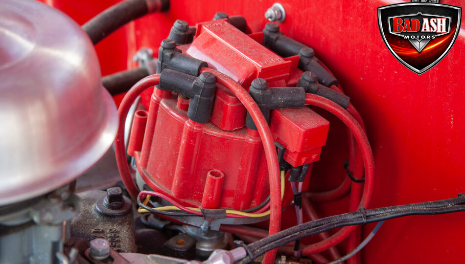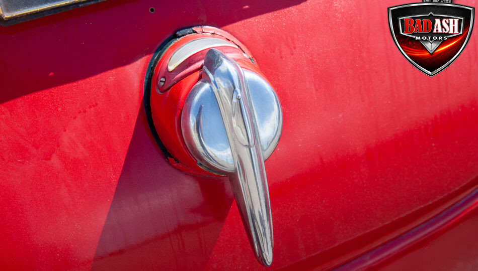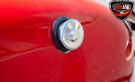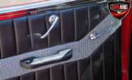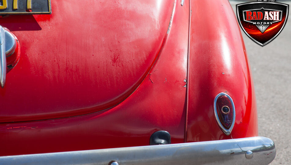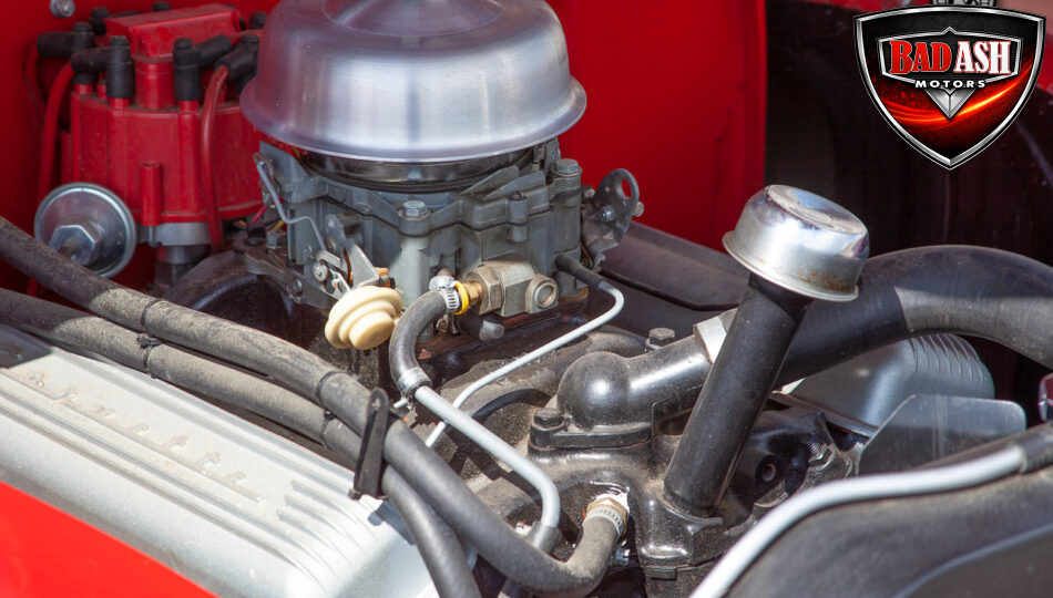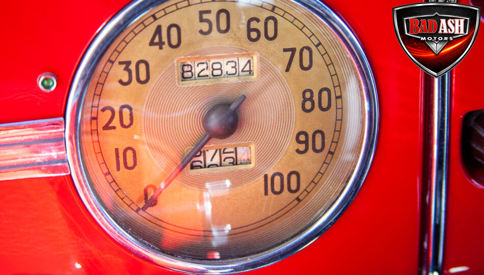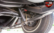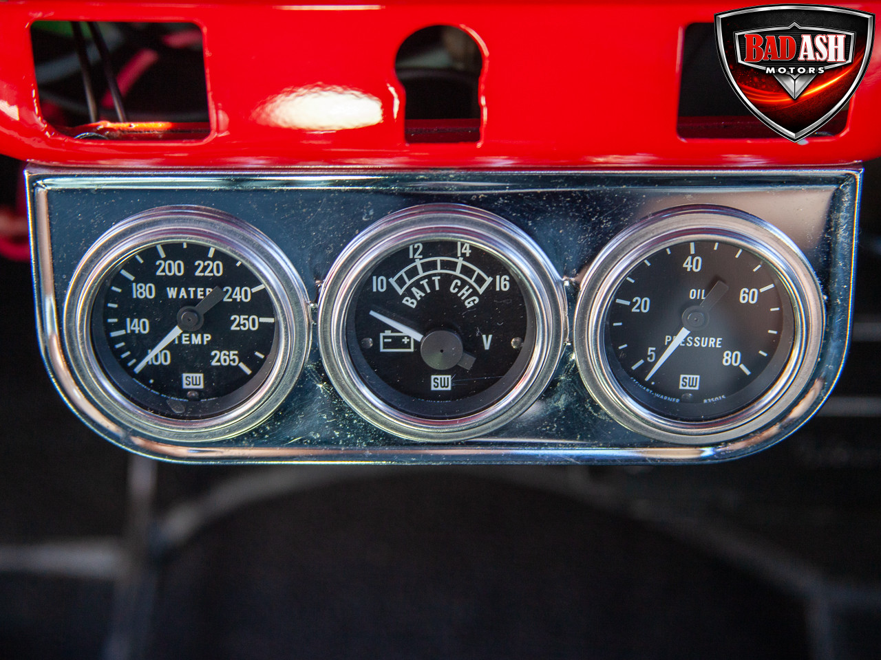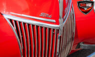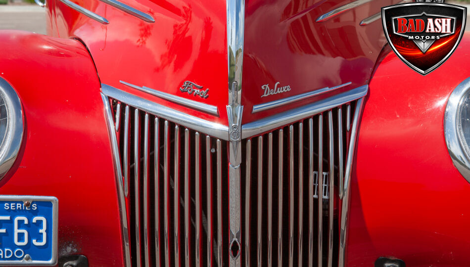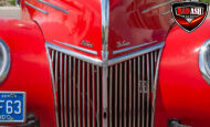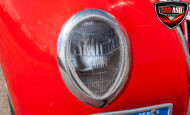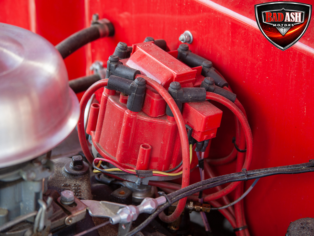 This red coupe is well equipped with a power driver’s seat and tilt steering wheel, while the custom interior features black cloth and leather seats with a houndstooth stripe for a classic performance look. Up front, it benefits from a Weed Eater crossmember, tubular A-arms, and Mustang II–style disc brakes.
