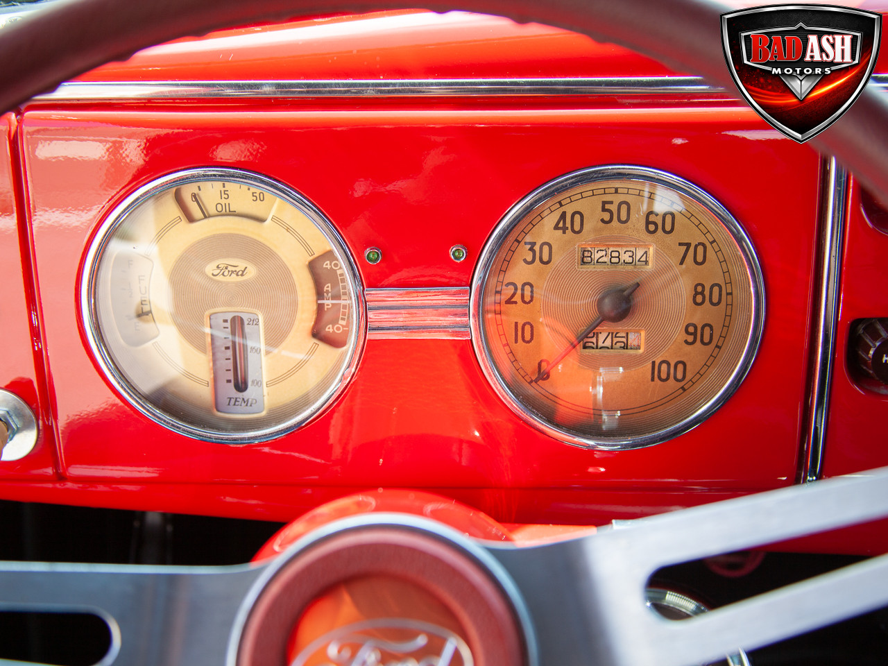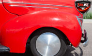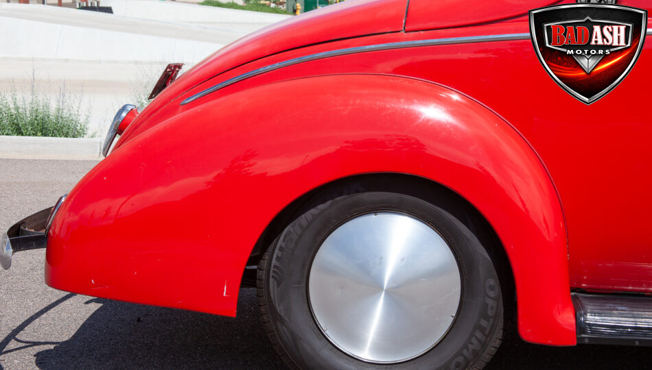 Power comes from a 1967 Chevy Camaro 350 V8, paired with a Muncie 4-speed manual transmission that was rebuilt approximately 1,000 miles ago. The drivetrain is backed by a Lincoln Versailles rear end with disc brakes, along with a Chassis Engineering rear spring kit. The powder-coated chassis, all-new glass and windshield, and Moon disc wheels with radial tires complete this well-sorted street rod.