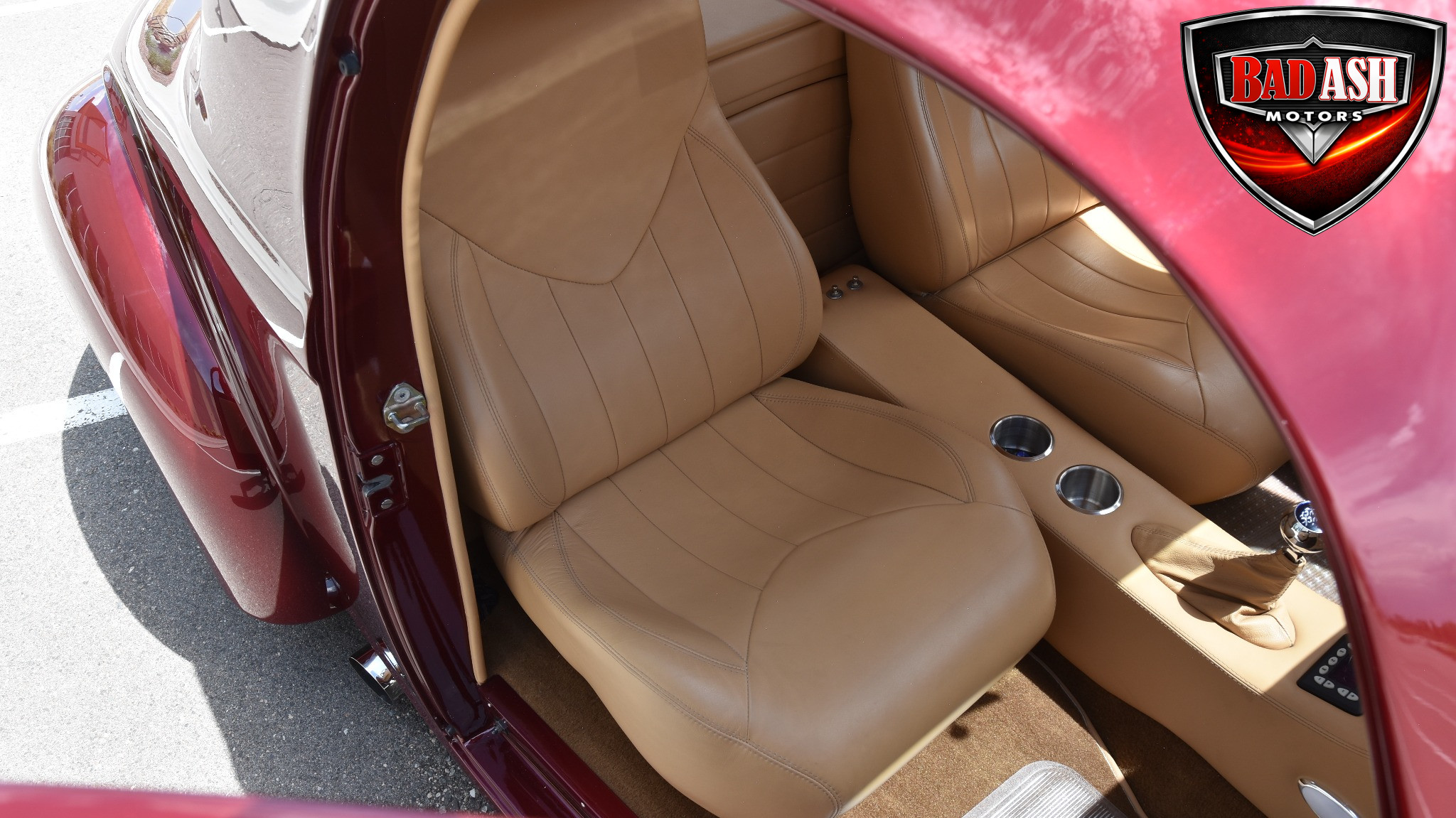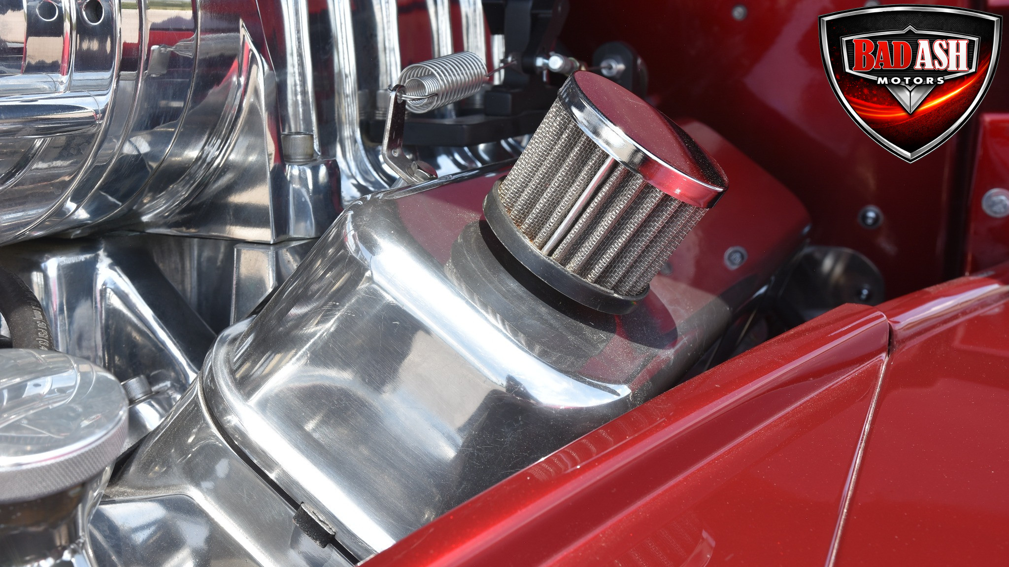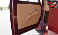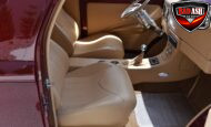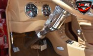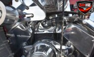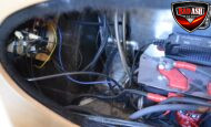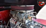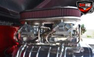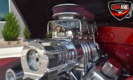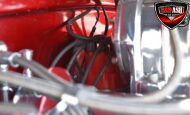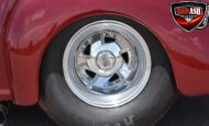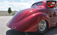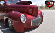 This Candy Black Cherry 1941 Willys sits on an Outlaw Stage 3 frame and features Outlaw bodywork throughout. Power comes from a Big Al’s Toy Box–built 540ci Big Block Chevrolet, topped with an 871 Blower Shop supercharger and dual Holley 750 carburetors, supported by MSD 6AL ignition.