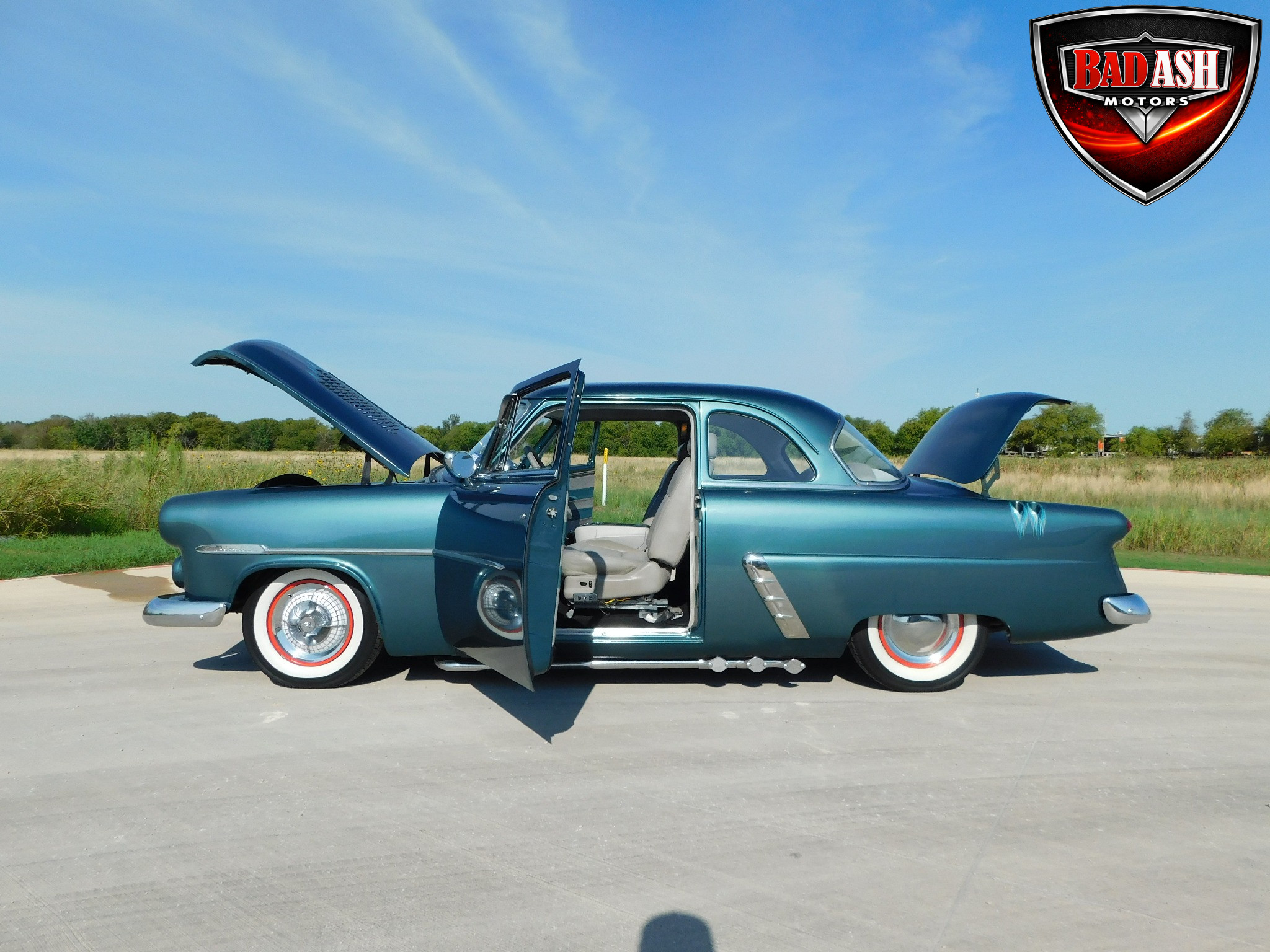 This 1952 Ford Customline is a tastefully updated classic, powered by a 350ci V8 paired with an automatic transmission. Finished in teal green over a gray interior, it offers classic 1950s style with modern drivability. Showing 871 miles (unknown), the car features a durable Ford 9-inch rear end, making it a well-sorted cruiser ready to enjoy on the road or at local shows.