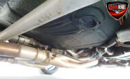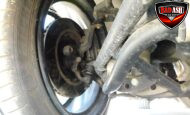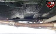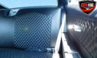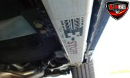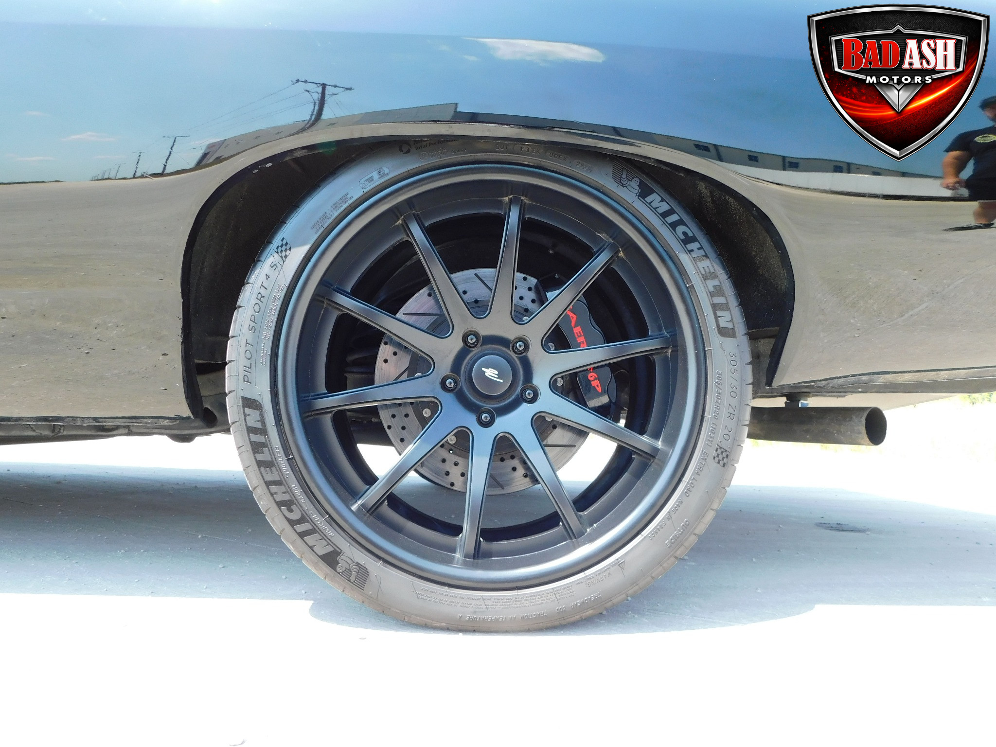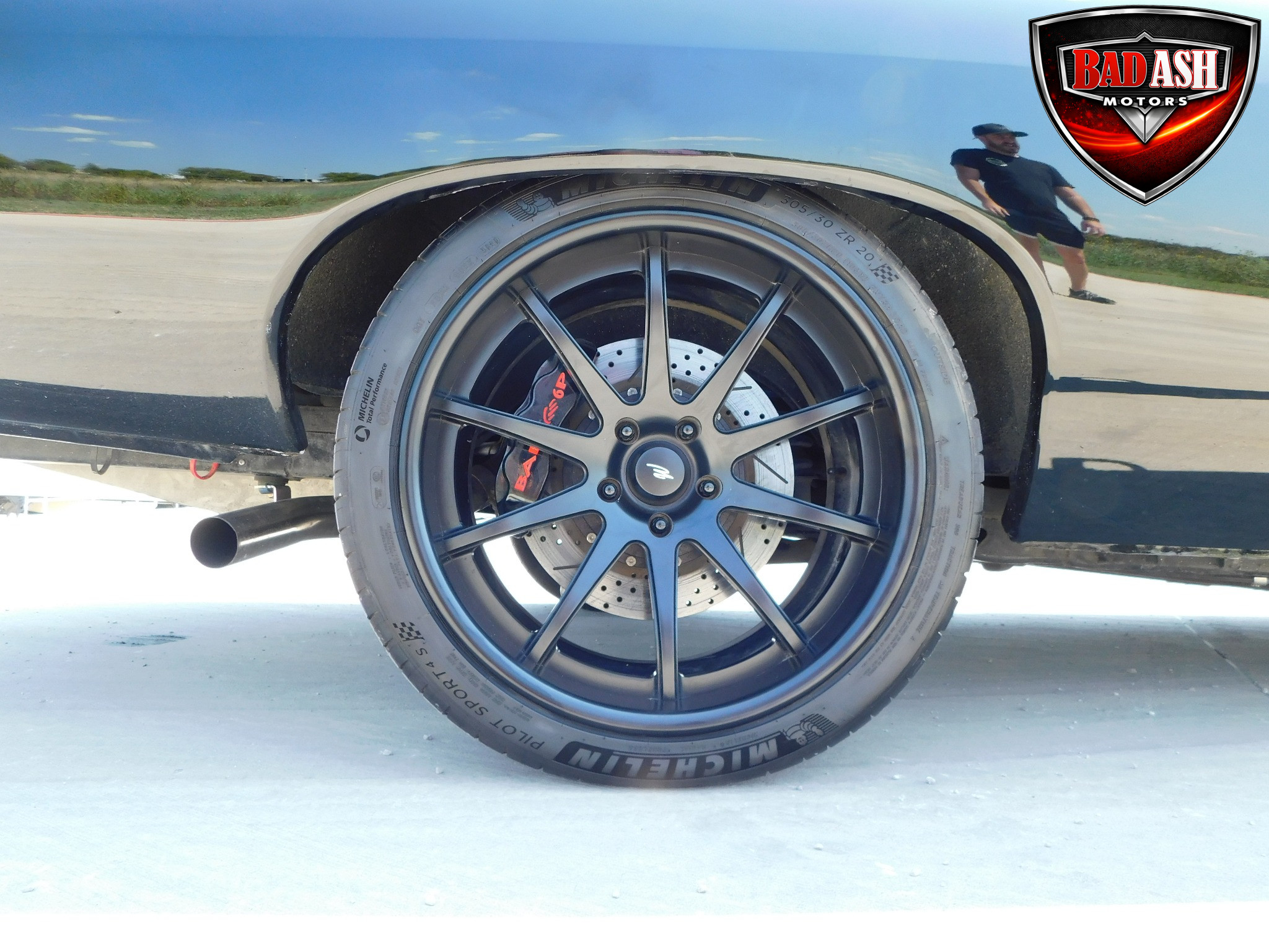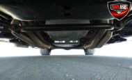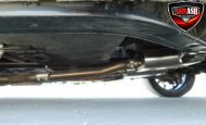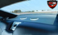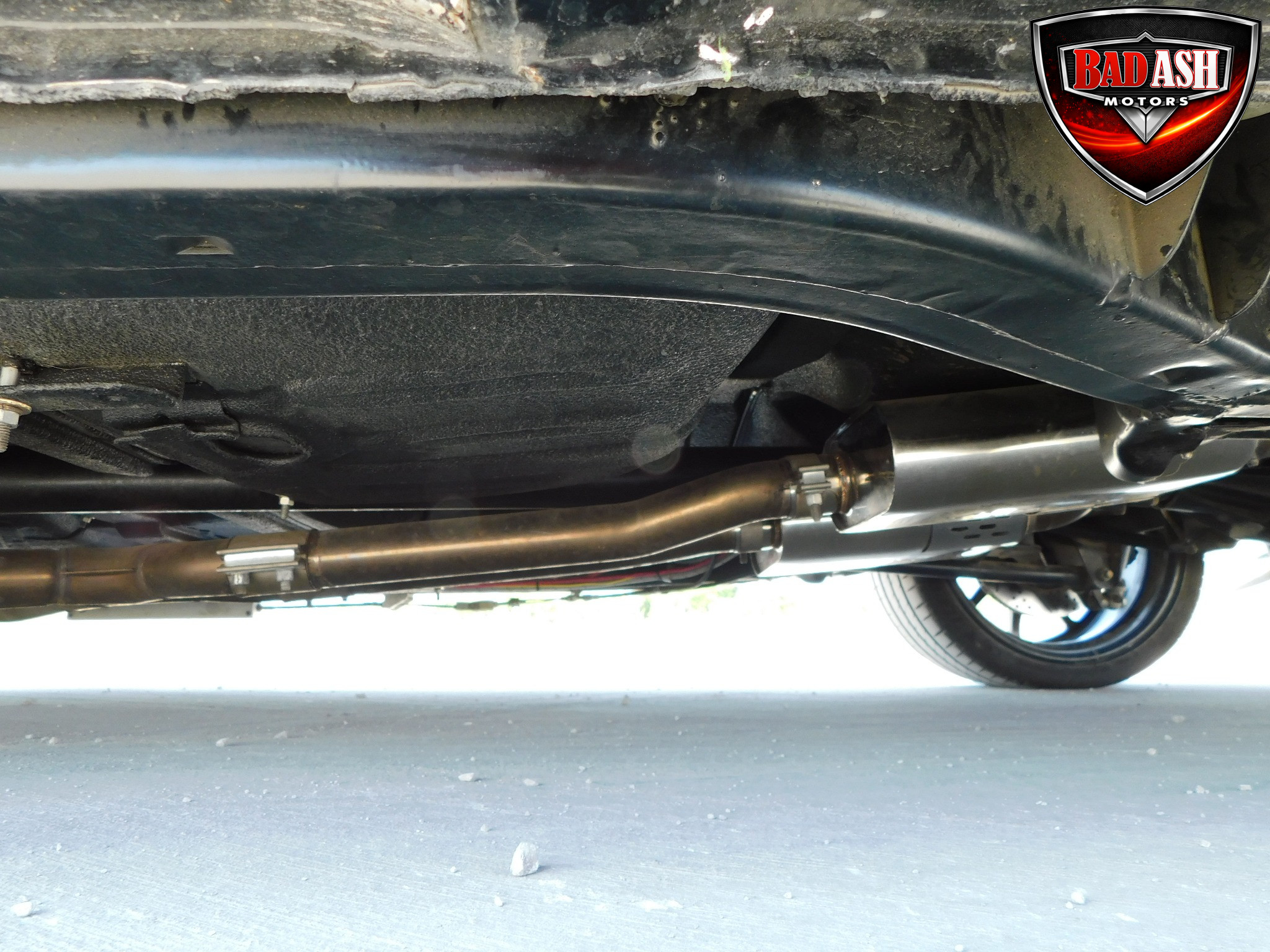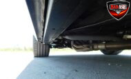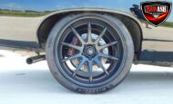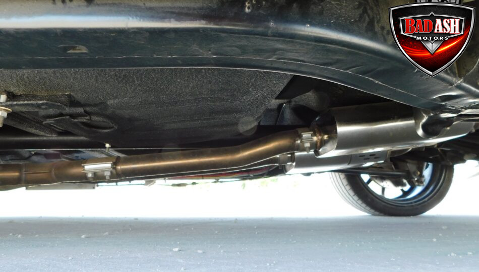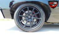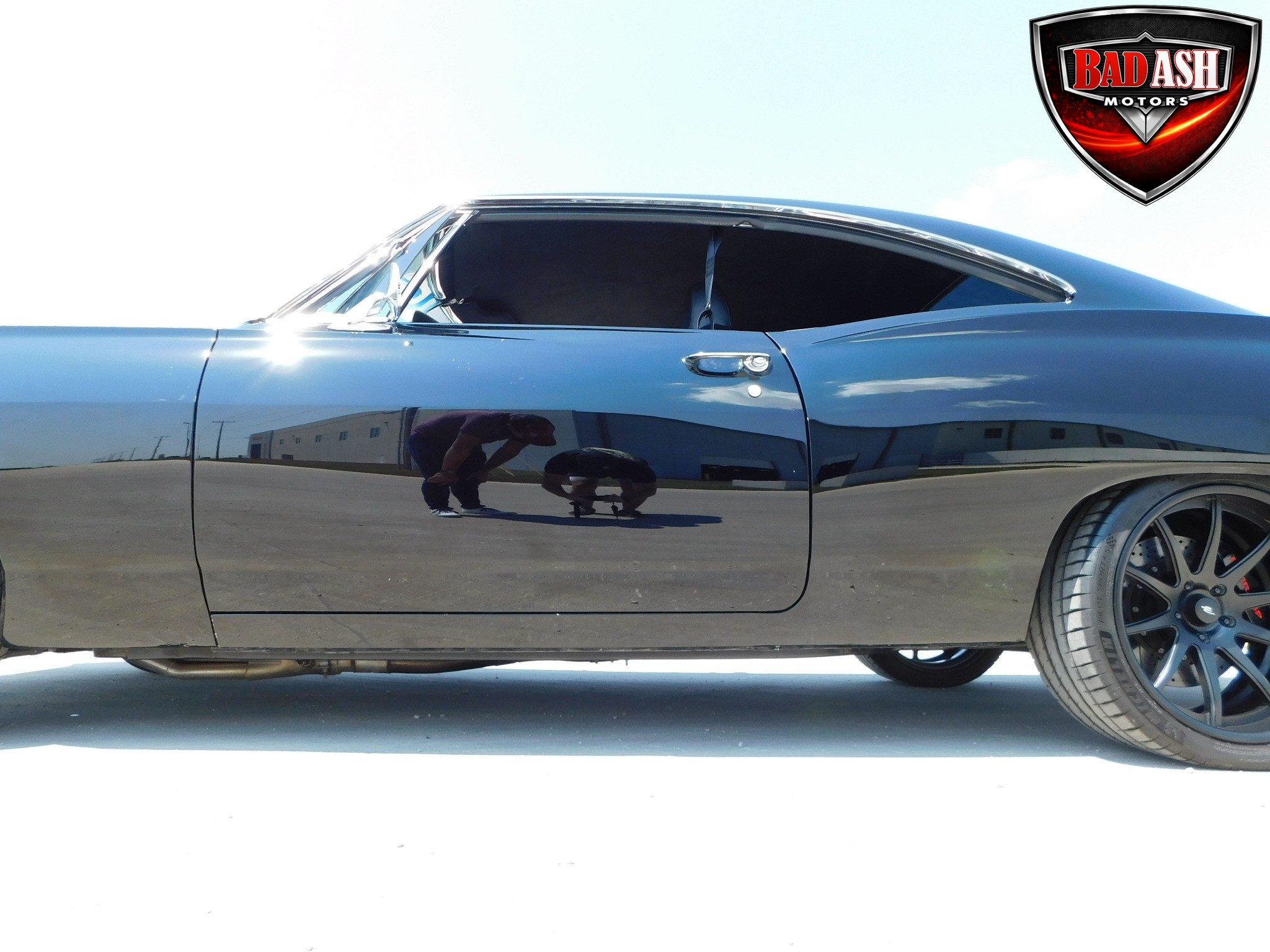 Inside, the blackout theme continues with custom Recaro power seats, new carpeting, a refinished dash with Dakota Digital gauges, Vintage Air A/C, power windows, and a Pioneer touchscreen stereo.