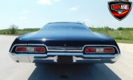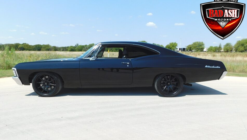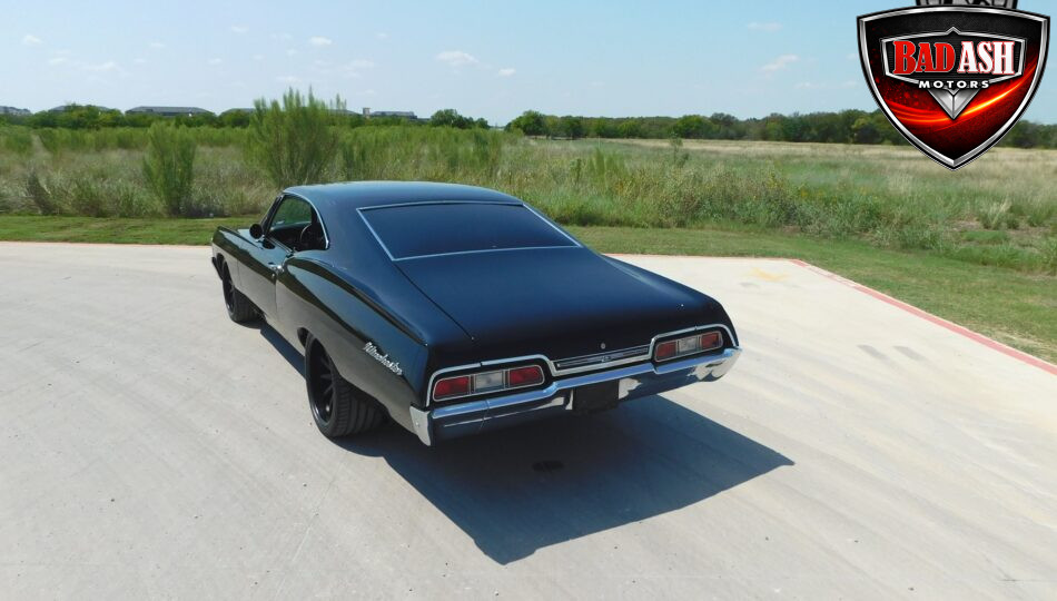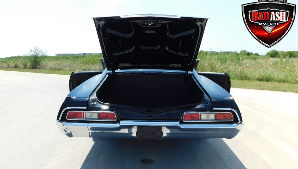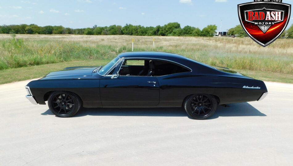 Presenting this 1967 Chevrolet Impala, fully upgraded with a bold, modern attitude. Finished in sleek black with a lowered stance, satin-black 20″ wheels, and wide rear tires, this Impala looks as aggressive as it performs. Chrome bumpers and an upgraded grille add sharp contrast to the dark exterior, highlighting the car’s classic hardtop profile.