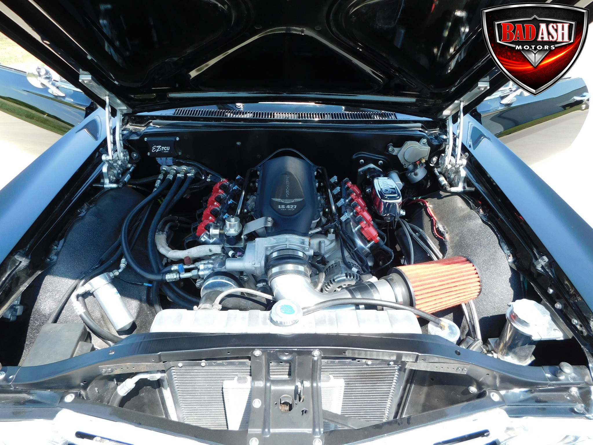 Under the hood sits a brutal LSX 427 V8 pushing approximately 785 horsepower, paired with a SuperMatic 8L90-E 8-speed automatic transmission. Supporting upgrades include Holley Sniper EFI, Hedman headers with electric cutouts, BeCool aluminum radiator, coilover suspension, and BAER four-wheel disc brakes.