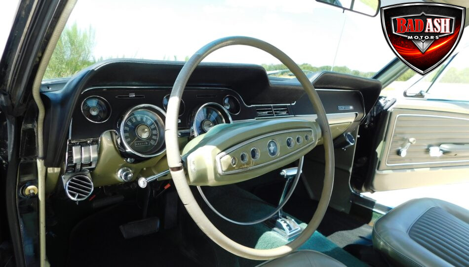 We are pleased to offer this 1968 Ford Mustang Coupe, a classic first-generation pony car that delivers smooth, enjoyable driving. Powered by a reliable inline-six engine with a Holley carburetor and paired to a 3-speed automatic transmission, this Mustang offers excellent drivability, good fuel economy, and nimble handling. Finished with a coordinated two-tone green interior, it features front bucket seats, rear bench seating, and period-correct details throughout. Riding on black steel wheels with chrome center caps and whitewall radial tires, this Mustang presents as a well-kept, driver-quality classic that’s ready to be enjoyed on the road or at local cruises.