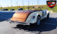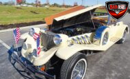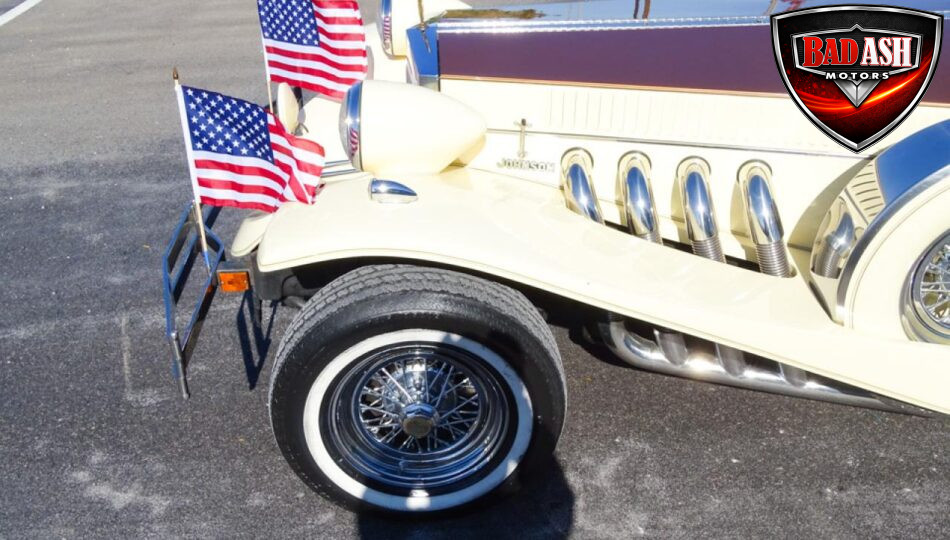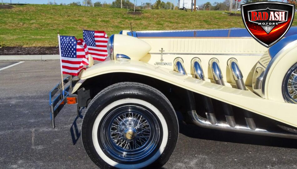 We are proud to debut this extraordinary 1983 Johnson Presidential Rumble Seat Roadster, a truly rare and elegant automobile that looks as though it rolled straight out of The Great Gatsby. Riding smoothly and confidently, this long-bodied Presidential delivers an experience comparable to driving a Cadillac—because, in many ways, it is one.