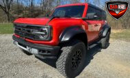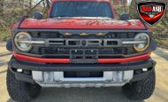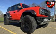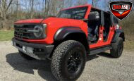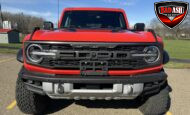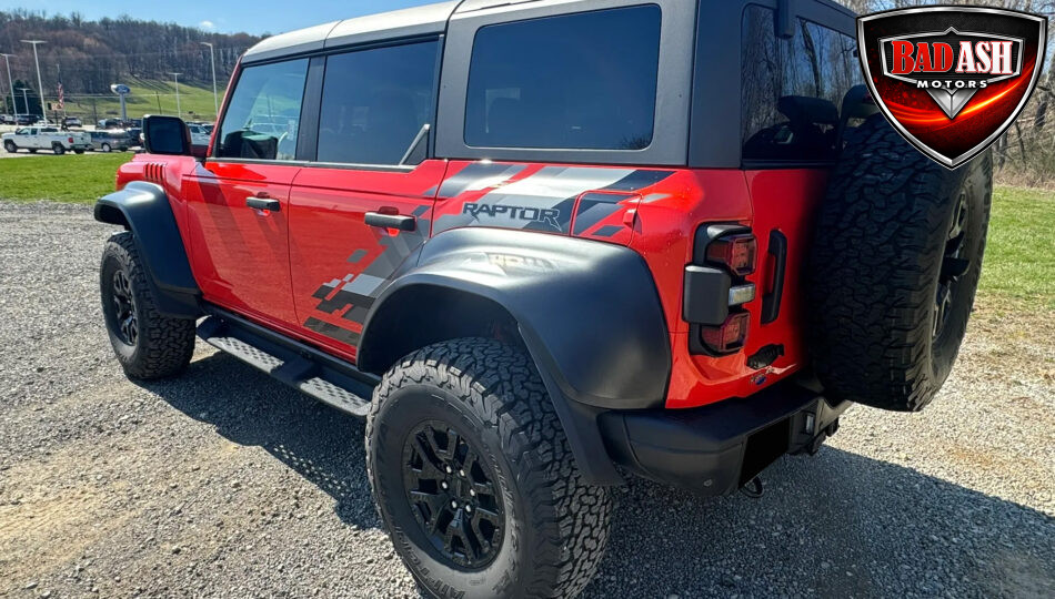This 2022 Ford Bronco Raptor shows approximately 40,108 miles and is powered by a twin-turbocharged 3.0L EcoBoost V6 producing 418 horsepower and 440 lb-ft of torque, paired with a 10-speed automatic transmission, dual-range transfer case, and electronic locking front and rear differentials.