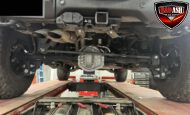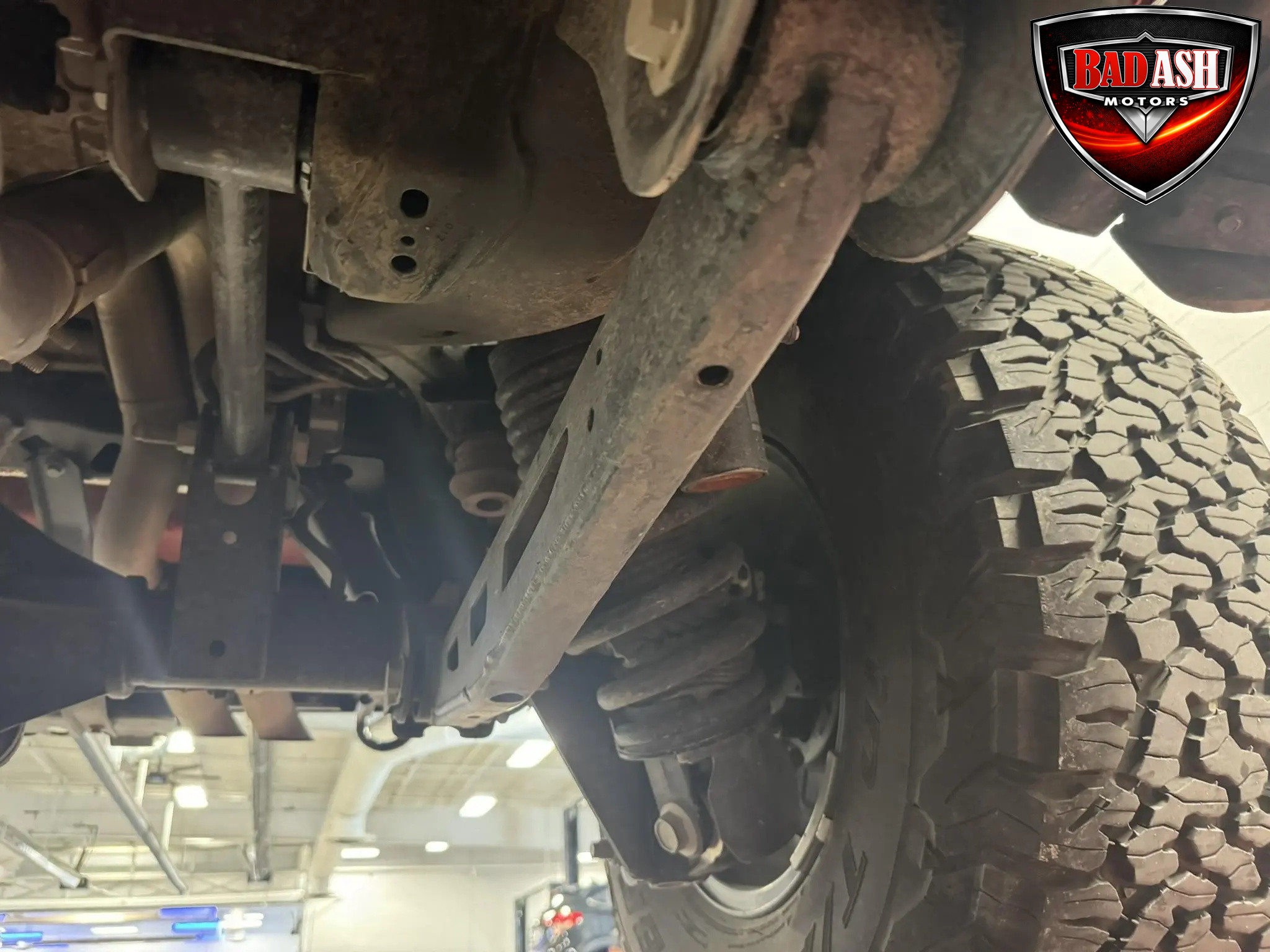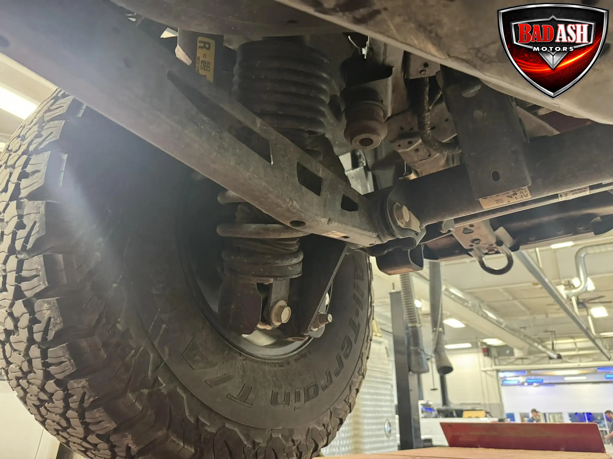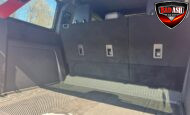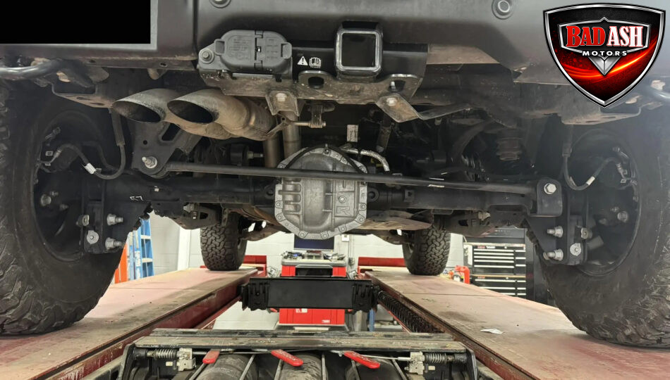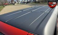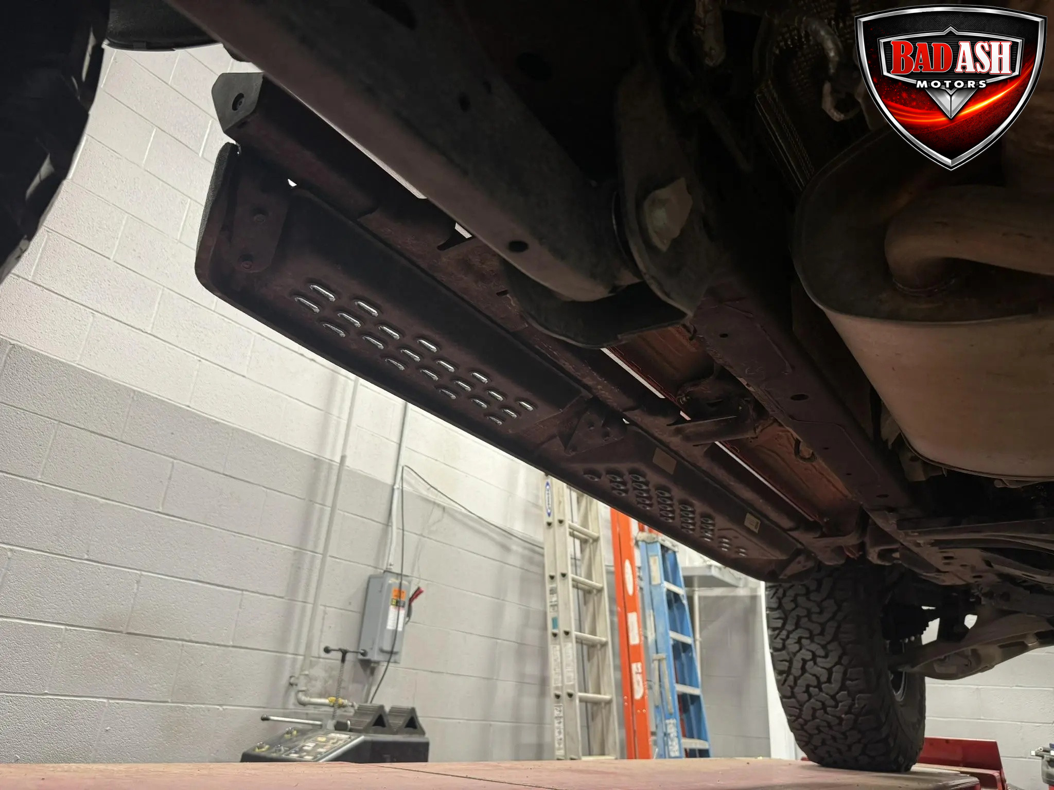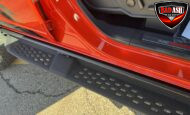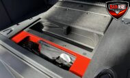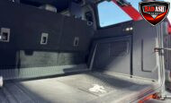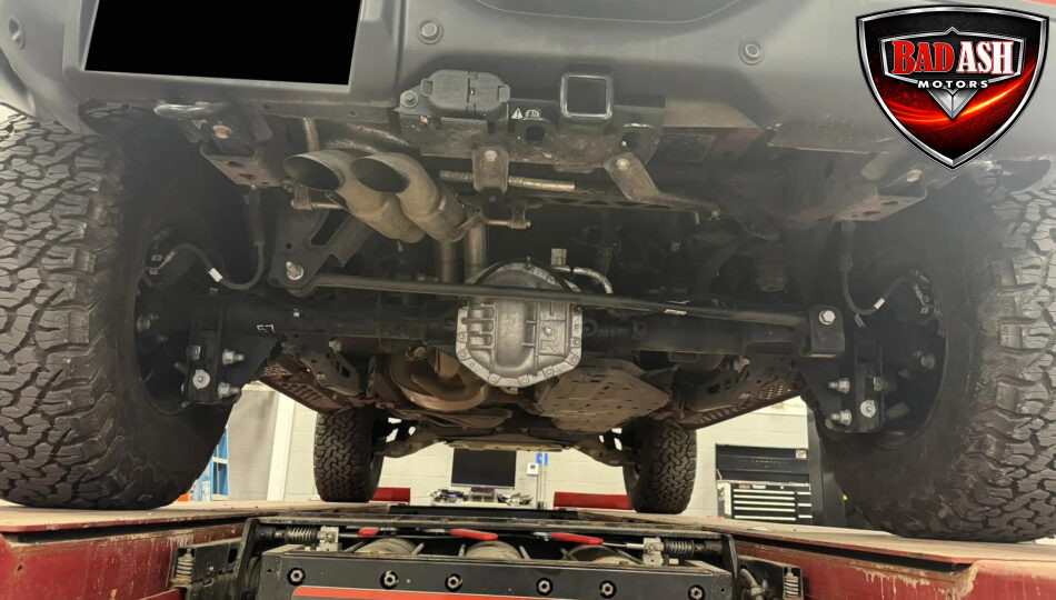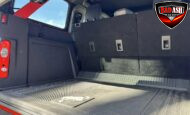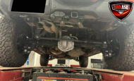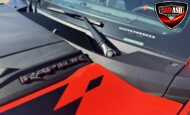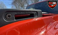 Exterior highlights include a Carbonized Gray hardtop, Raptor-specific hood, fender flares and vents, LED lighting, heavy-duty modular front bumper, running boards, receiver hitch, rock rails, metal bash plates, and removable doors. It rides on 17″ black alloy wheels with 37″ BFGoodrich All-Terrain KO2 tires and a matching full-size spare.