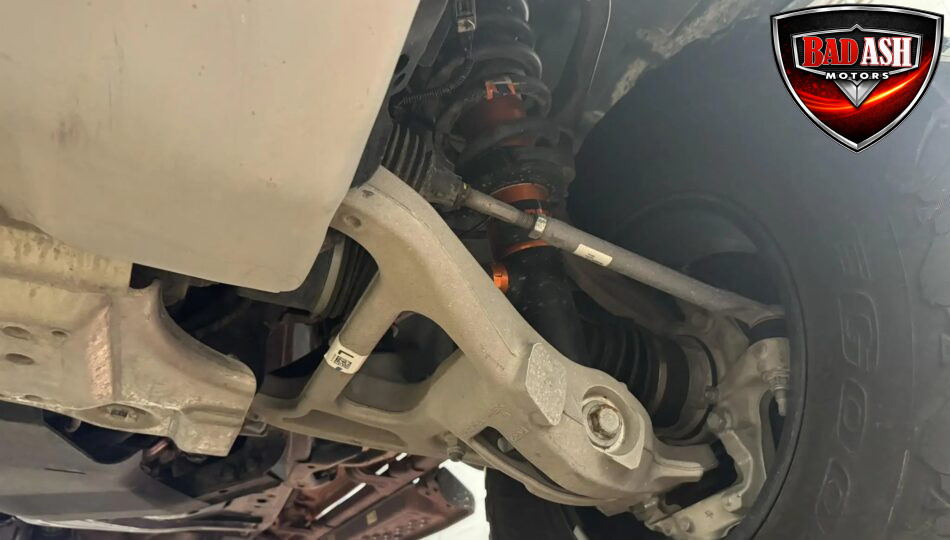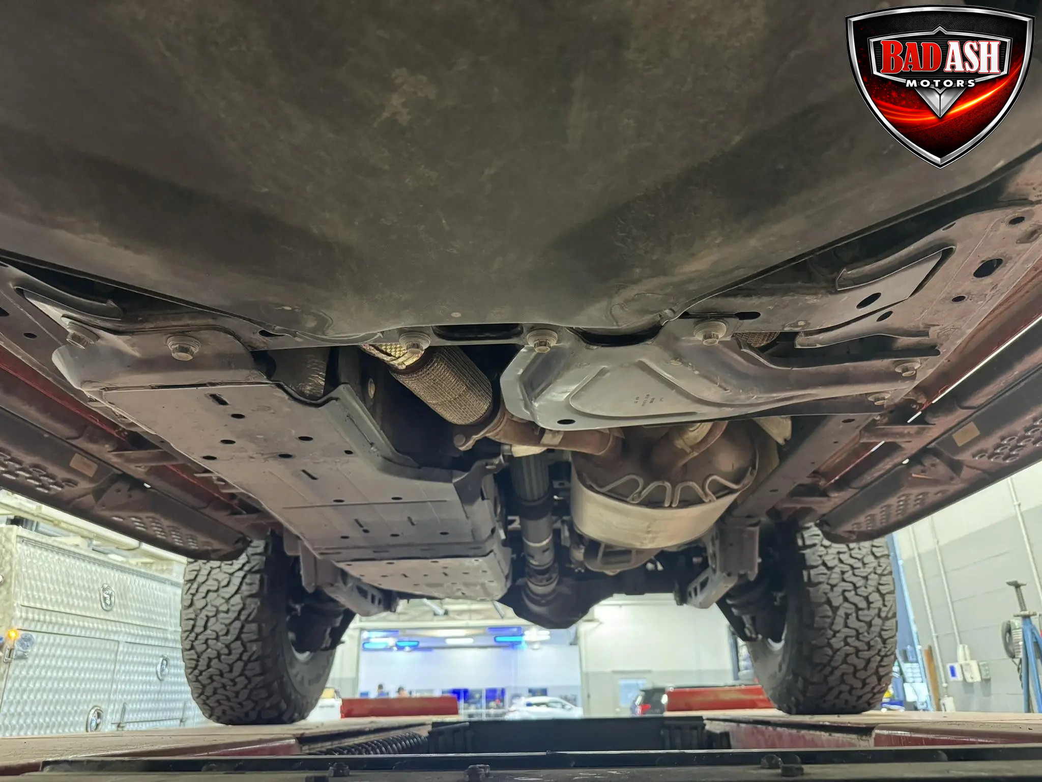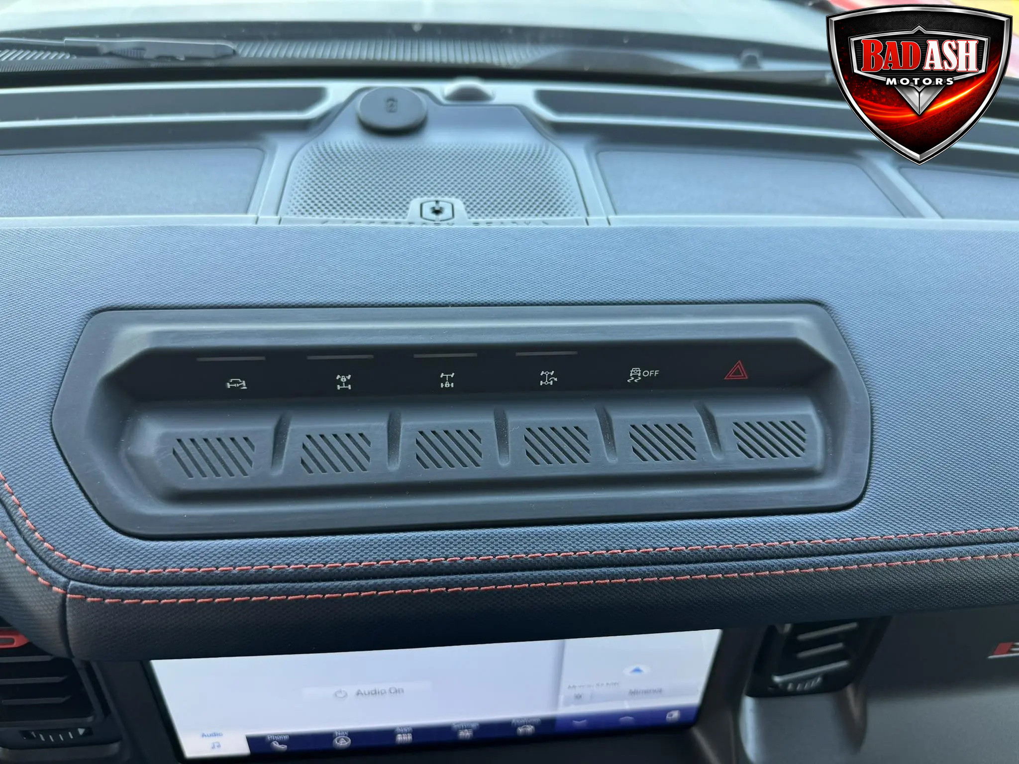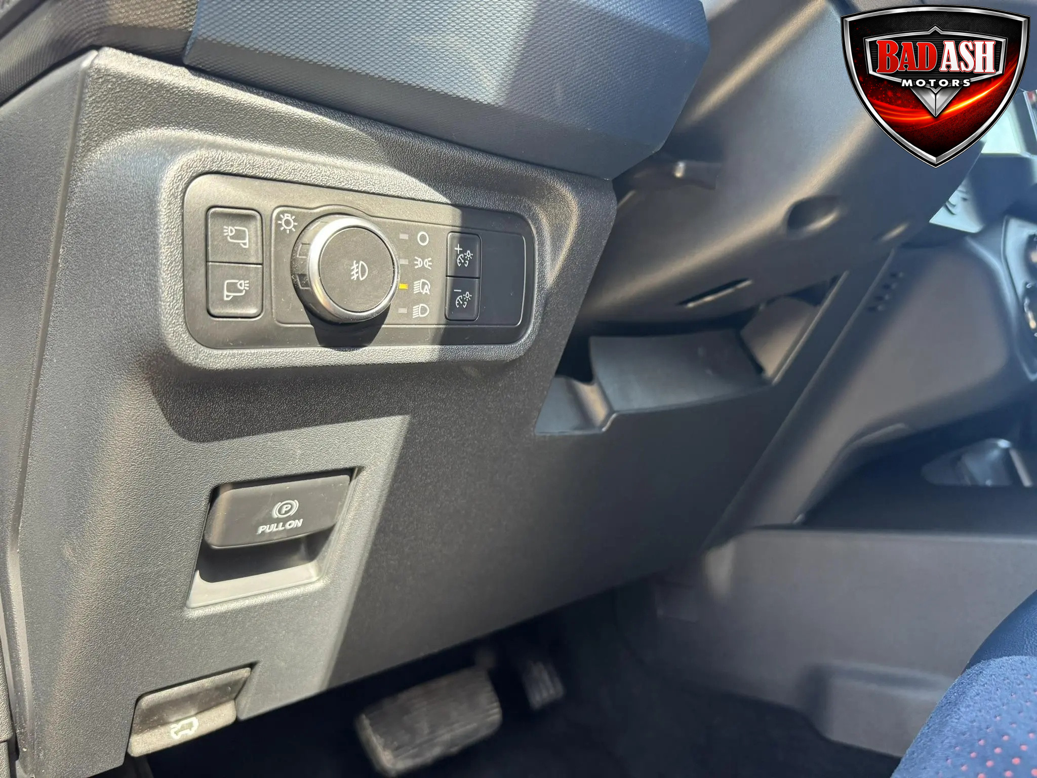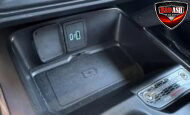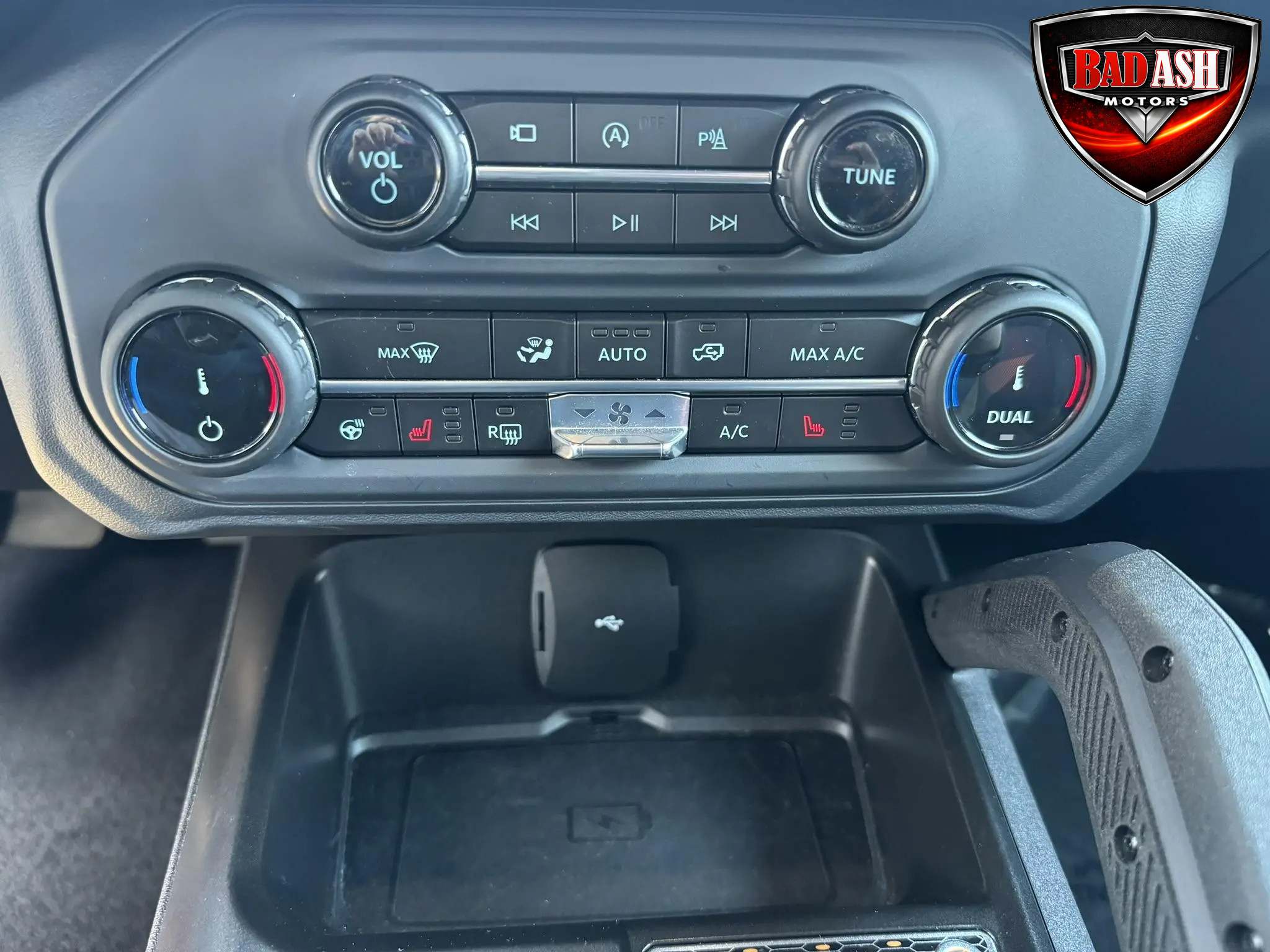 The cabin features heated power-adjustable seats, SYNC 4 infotainment with a 12″ touchscreen and navigation, Bang & Olufsen premium audio, 360-degree camera, adaptive cruise control, blind-spot monitoring, lane-keep assist, wireless charging, auxiliary switches, and dual-zone automatic climate control.