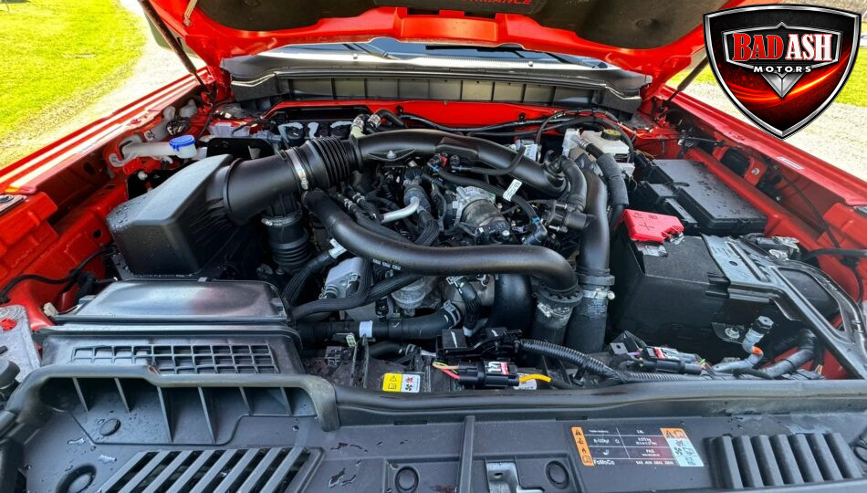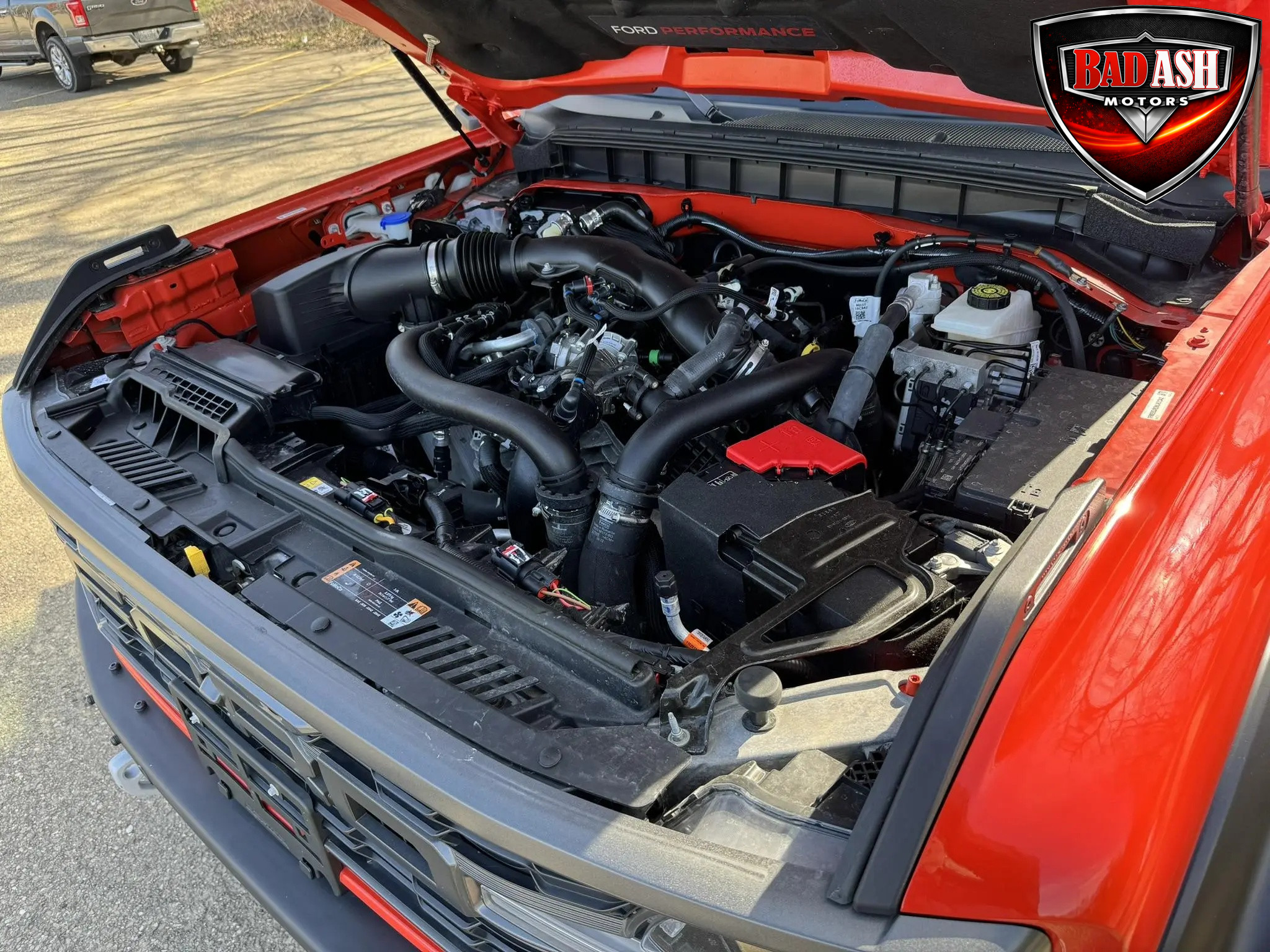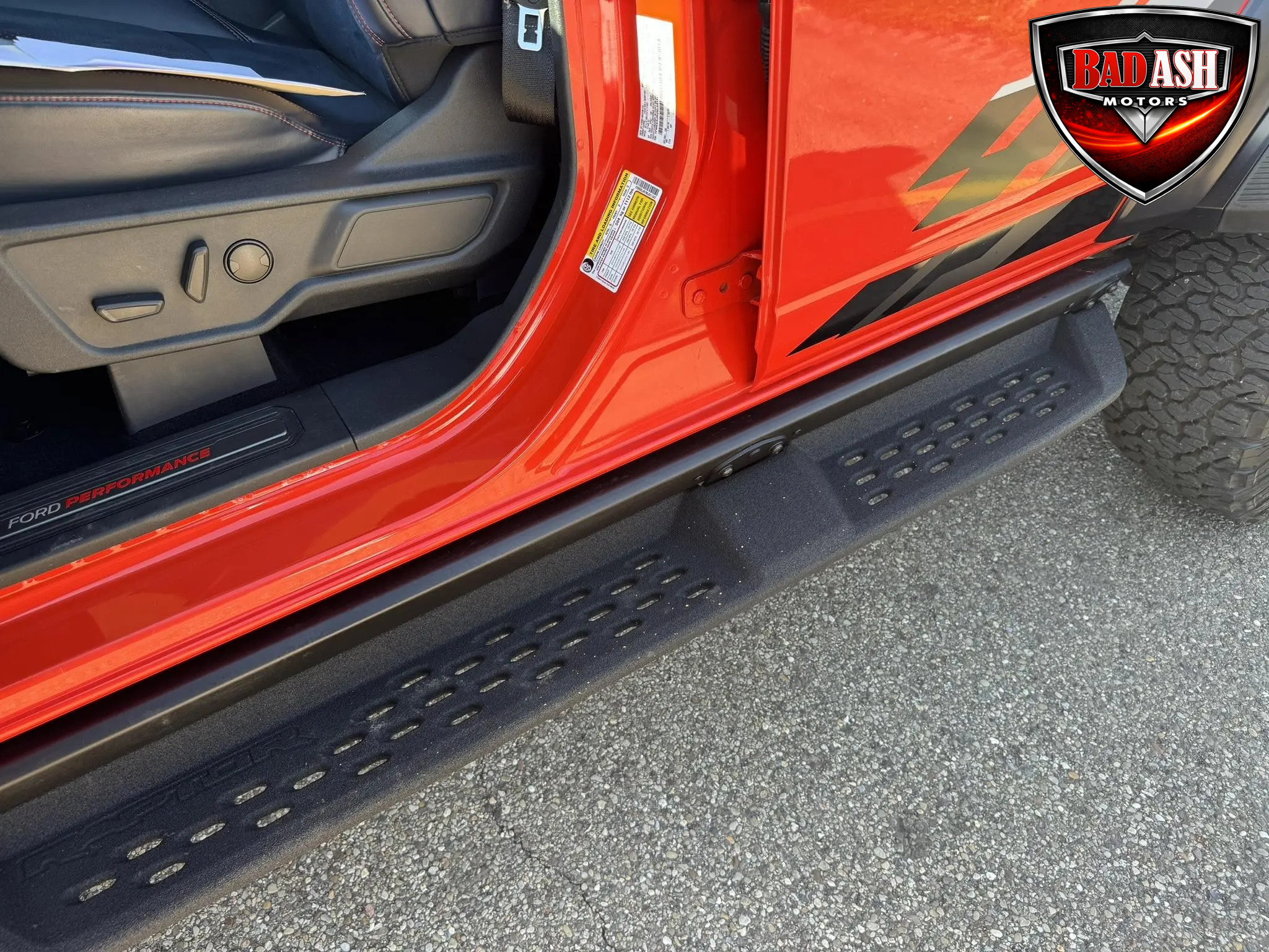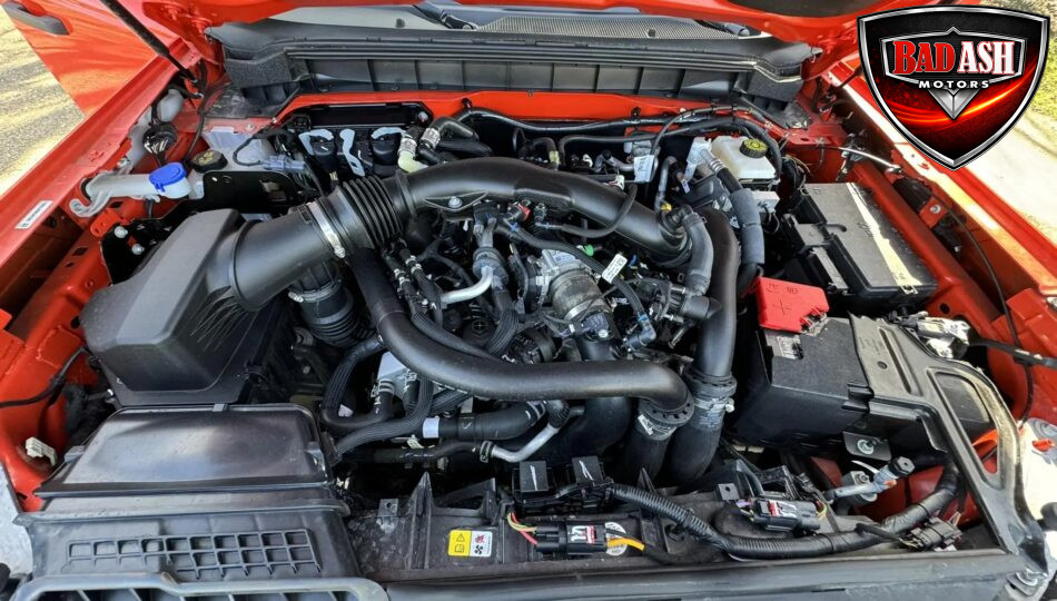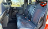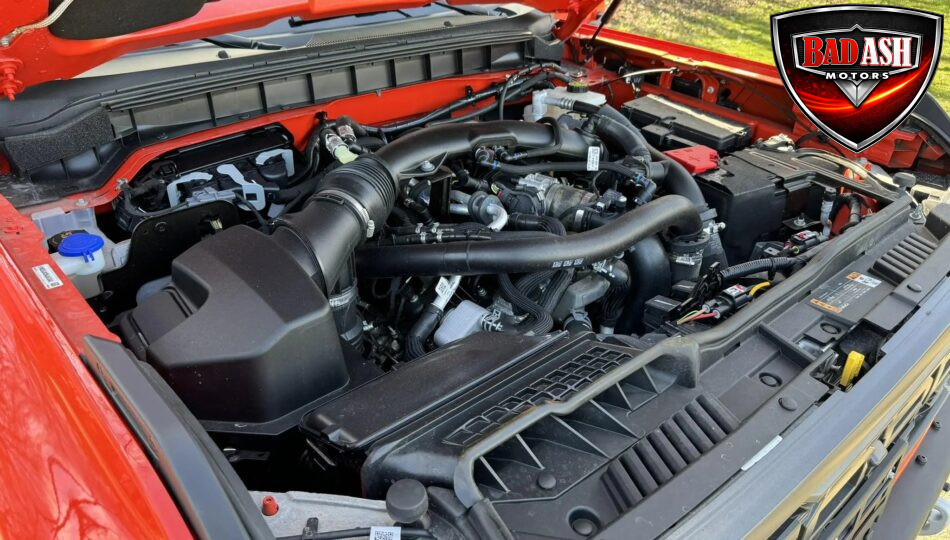 Finished in Code Orange with multi-tone graphics over a Blue and Black Onyx leather and suede interior, this example is equipped with the desirable Lux Package. Performance features include the HOSS off-road suspension with live-valve Fox dampers, Terrain Management System with G.O.A.T. drive modes, front stabilizer bar disconnect, Dana front and rear axles with 4.70:1 gearing, active exhaust, and four-wheel disc brakes. The Raptor’s wider track and increased ground clearance enhance its off-road capability.